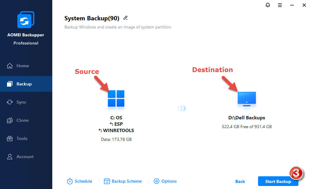 Creating a system image backup with Aomei Backupper involves just three simple steps: