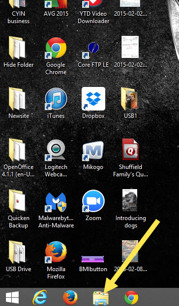 There are a couple of different ways to get to where you need to go. I will be showing the way I prefer. First you will want to set up your child’s account, assuming you have not already done this. On the desktop go down to the bottom left of the screen and locate the folder icon on the Taskbar. Click it.