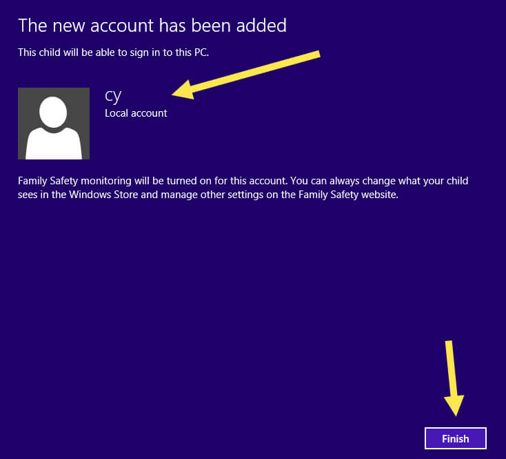 The next screen will show the account you have created. Now all you have to do is click “Finished.”