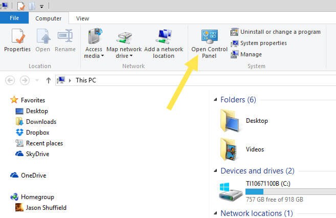 Next you need to click on the Control Panel icon at the top of the screen.