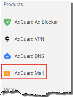 • Once you’ve created an account and logged in, a new page will open with a list of services in a left-hand panel – click AdGuard Mail