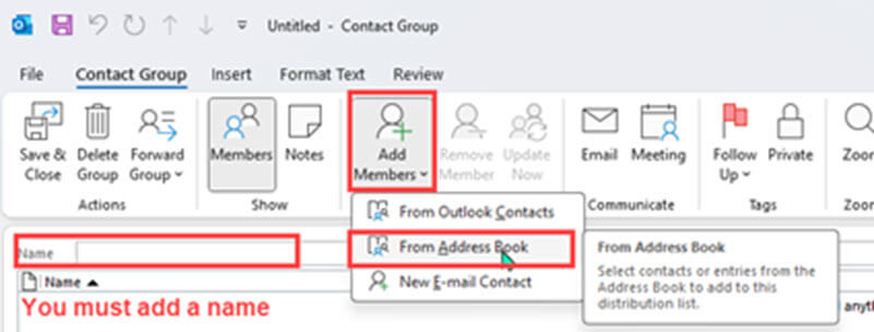 - In the drop-down menu choose where the members are located. Use Address Book.