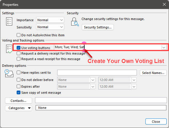When templates are used for large groups the person sending out the template might want a quick Yes or No answer and having the ability to Insert Voting Buttons allows you to do that.