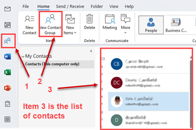 - Click on the People Icon on the left of Outlook.