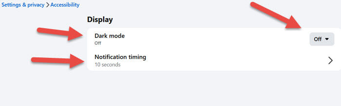 - Dark Mode (Adjust the appearance of Facebook to reduce glare and give your eyes a break) Off, On, or Automatic