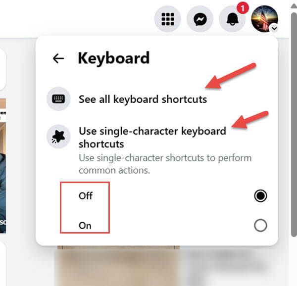- Use single-character keyboard shortcuts (Use single-character shortcuts to perform common actions) On or Off