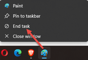 Once enabled, this will add an End task option to the Taskbar icon’s right-click menu. You’ll be able to kill an unresponsive app by simply right-clicking its icon in the Taskbar and then clicking End task: