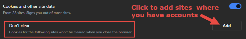 For optimum privacy I guess the user should disable the option to “Allow sites to save and read cookie data“. However, in my opinion, the inconvenience of needing to keep signing in to accounts at each visit outweighs any privacy concerns (see Clear Browsing Data > Cookies and other site data above)