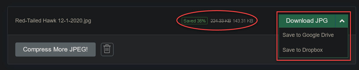 In the above example, you can see that the image size was reduced by 36%– not too shabby. Here is the before/after comparison: