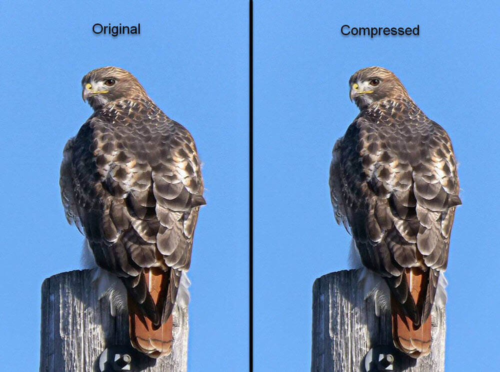Try to ignore the fact that I couldn’t quite get the above images exactly equal in size. This makes the compressed bird look, well, compressed. Once you stop laughing, try to focus on the image detail instead. I can’t see a difference.