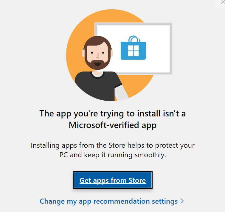 Yep, it's just a simple setting MB. At the moment you have "Apps" set to install from the Microsoft Store only. You need to change that setting to "Anywhere".