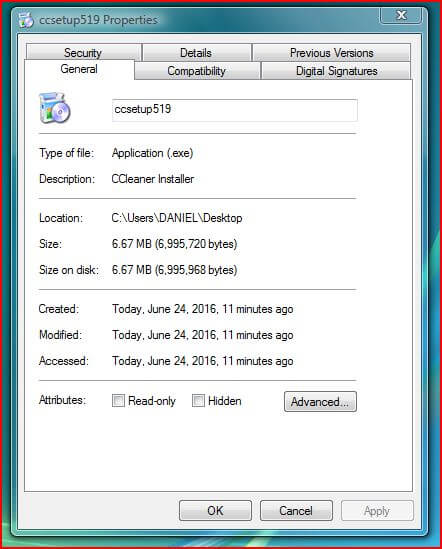 As you can see this is the ccsetup519.exe, and I am sure everyone has installed CCleaner, at one time. This was happening for all installers that i was trying to run. Pay attention to security and the unblock tab by opening the properties of the ccsetup519.