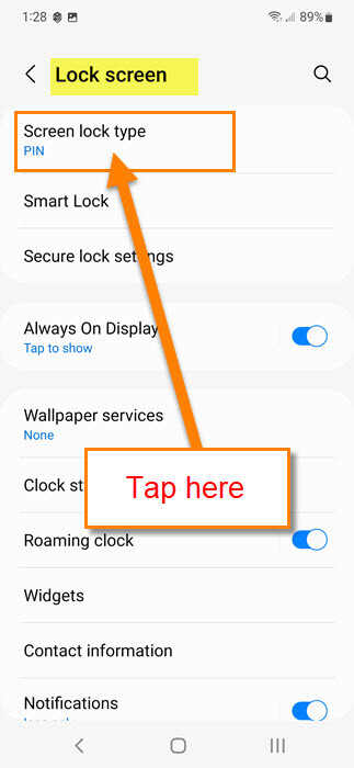 Step 3: On the Lock Screen Tap on Screen lock text.