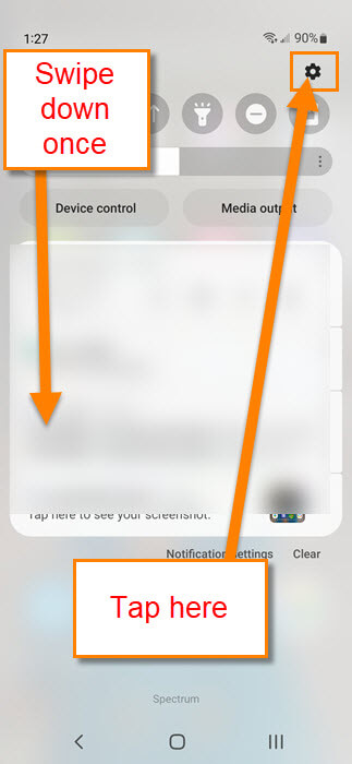 Step 1: You will need to swipe down only once from the top of the phone. Tap on the gear icon.