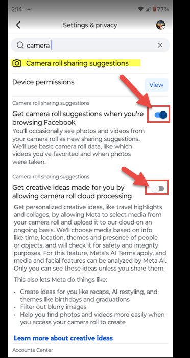 Bonus Tip: If you want to make sure Facebook has no access. You can remove the camera roll access altogether this way: