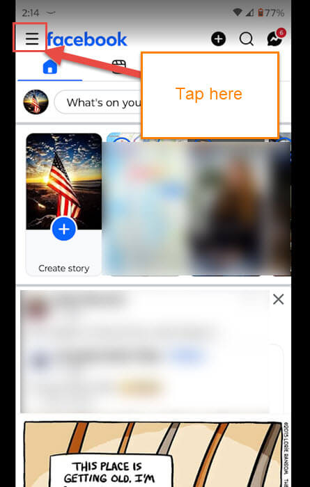 Step 2: Once on the Facebook app, look to the top left (They did an update on my phone, so it may be the top right). Tap the 3 menu lines.