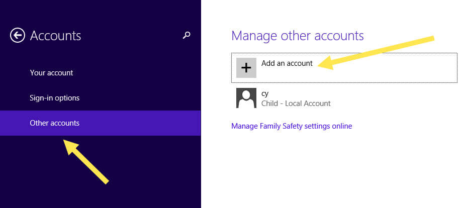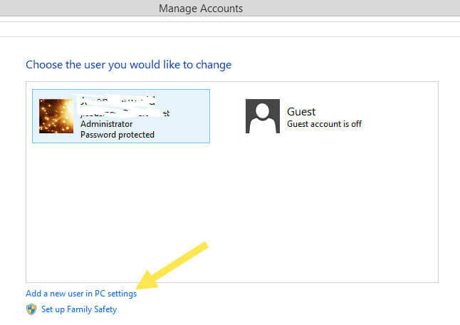 Here you will want to click the link “Add a new user in PC settings”.