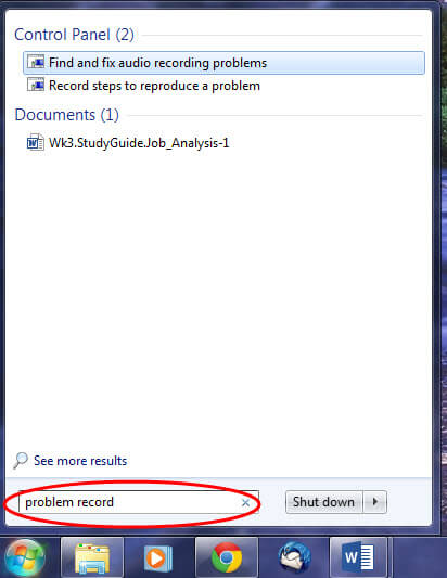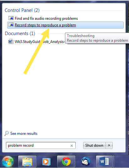 After typing “Problem Record,” the option will appear that says “Record steps to reproduce a problem”