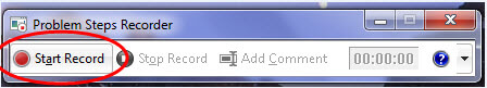 Once you have done that you will see the Record Bar appear. All you have to do now is click on the “Start Record,” to get the program running. Now just click through the exact same steps that led to your your issue and once you are done click “Stop Record.”