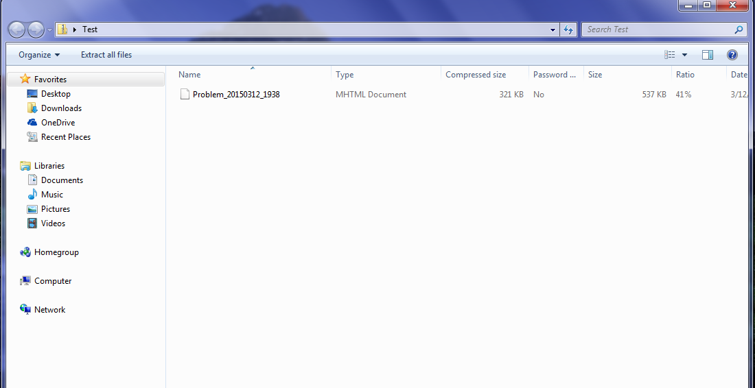 To open this Zip file all you need to do is click on the Zip file. Once you do that it will show the Problem MHTML Document. Double click to open.