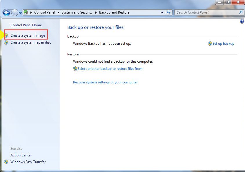 - Now you will want to Click on the “Create a system image” which is on the left side of the screen.