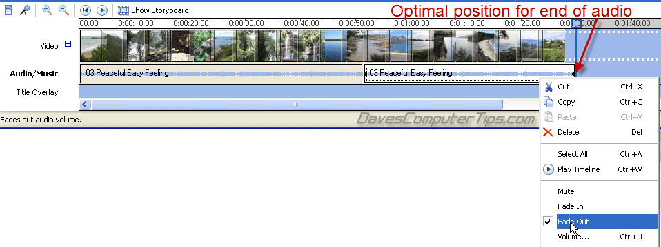 Now right click inside the last track and select the option to ‘Fade out’. You have just synchronized the audio and video: