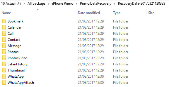 Primo backs up quickly, allows you to choose the export location and a quick browse through the resulting folder confirms that it’s up to date and all those precious photos and Whatsapp messages are squirreled away in their respective folders.