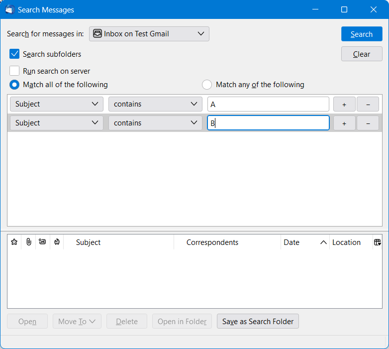 - Complex Search Terms offer searching with complex searches. While Thunderbird is limited to one set of search terms, Betterbird allows multiple groups of search terms. From the menu, a complex search is performed by selecting Edit / Find / Search Messages