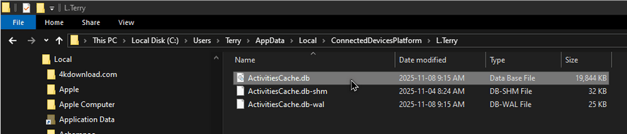 C\Users\Terry\AppData\Local\ConnectedDevicesPlatform\L.Terry\ActivitiesCache.db