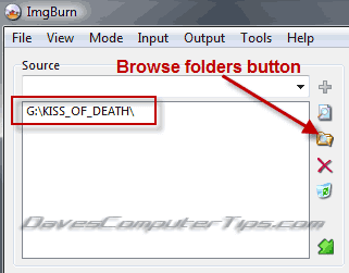 Insert a blank DVD into the ROM-Drive, open ImgBurn and select the option to Write files/folders to disc. Click on the Mode tab and make sure the Build option is enabled (ticked):