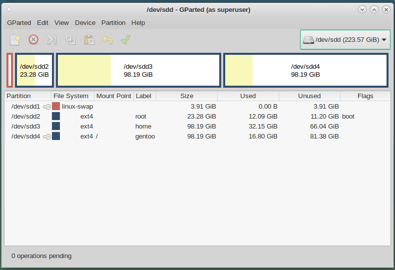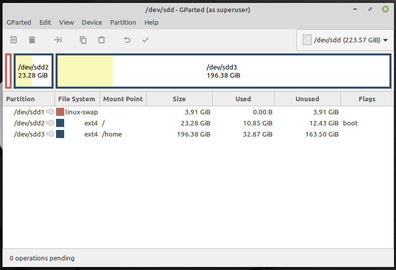 And, for full disclosure, I said that I had LMDE installed because I assumed it meant Linux Mint Desktop Edition. Maybe it does, maybe it doesn't, I'm not sure, but you know what I'm running now. I will head out to install gparted and see if I can get you a screenshot.