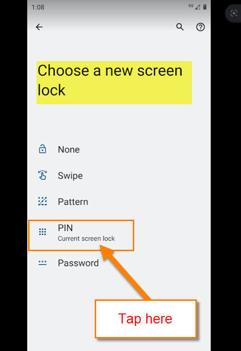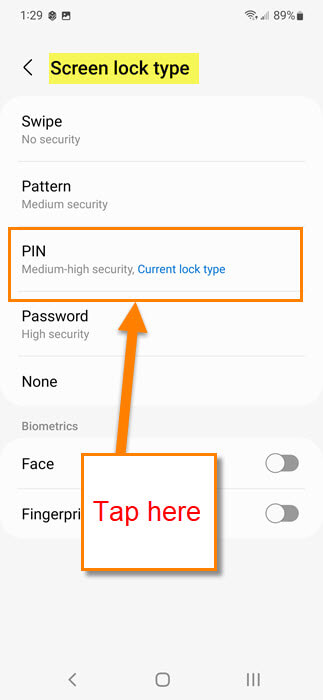 Step 4: Here you will see a few options but the one we want is PIN. Tap it.