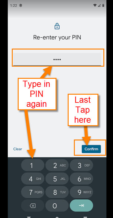 Step 6: Then it is time to Re-enter the PIN to confirm it. Now Tap OK.